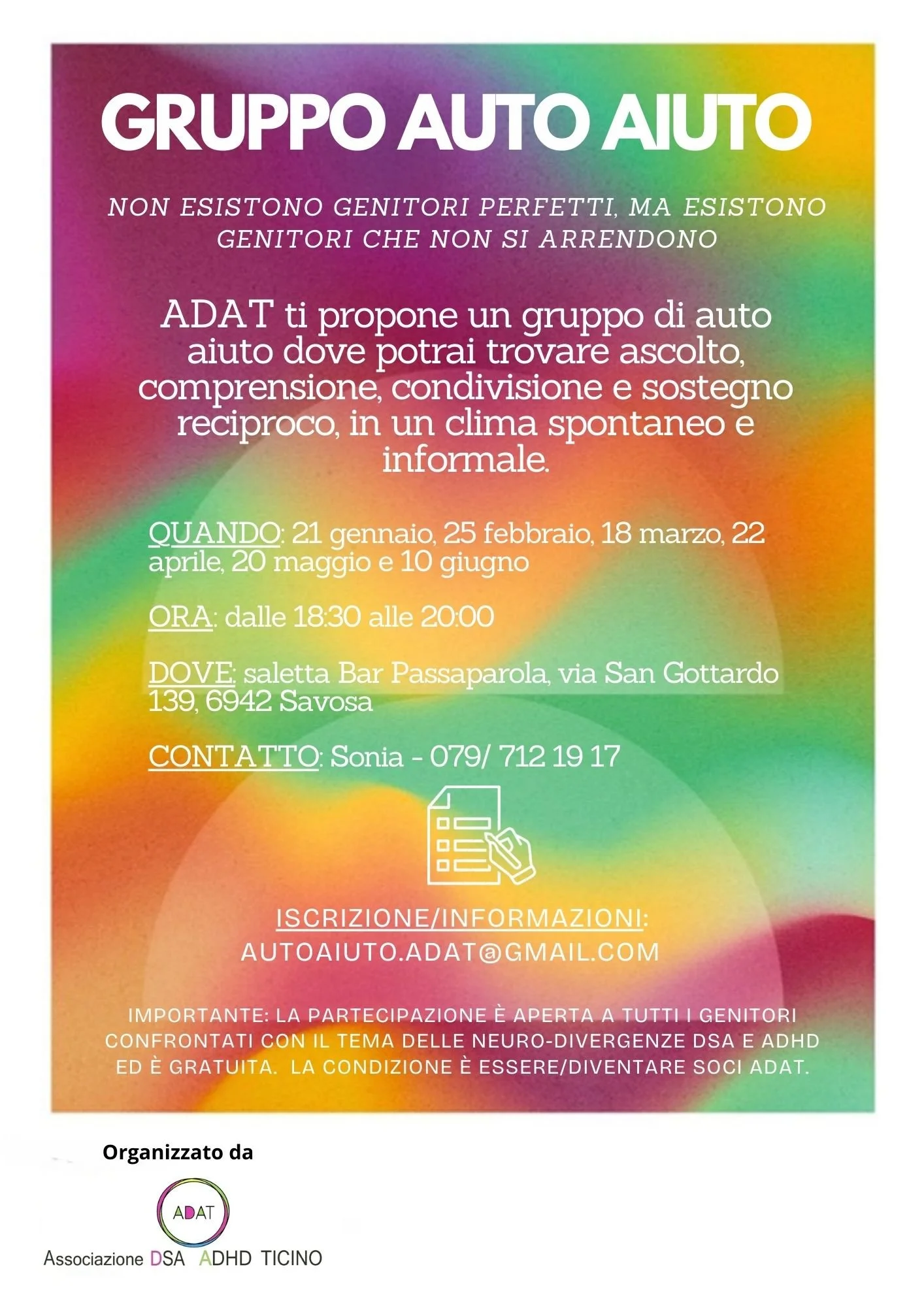 Con il progetto “Auto aiuto” ADAT propone incontri per genitori .